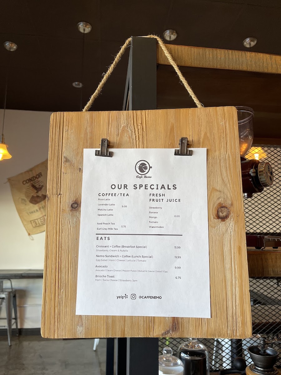 Cafe Nemo Menu